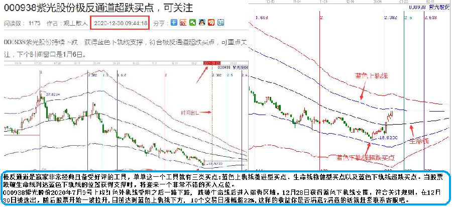 極反通道是贏家非常經(jīng)典且備受好評(píng)的工具,單單這一個(gè)工具就有三類買(mǎi)點(diǎn):藍(lán)色上軌線激進(jìn)型買(mǎi)點(diǎn)、生命線穩(wěn)健型買(mǎi)點(diǎn)以及藍(lán)色下軌線超跌買(mǎi)點(diǎn)。當(dāng)股票跌破生命線到達(dá)藍(lán)色下軌線的位置獲得支撐時(shí),將迎來(lái)一個(gè)非常不錯(cuò)的買(mǎi)入點(diǎn)位。