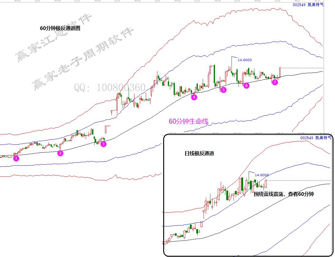 凱美特氣,繼續鞏固知識點:日線沖高紅線受阻后,依托藍色上軌線震蕩運行,短線信號參考60分鐘周期??梢钥吹剑看斡|及60分鐘生命線都快速拉起。贏家江恩對市場買賣信號的判斷,基于專業的工具和體系,更基于多年實戰應用總結得出的經驗技巧。請每位學員都牢記并去應用,將其變為自己的獲利技能。