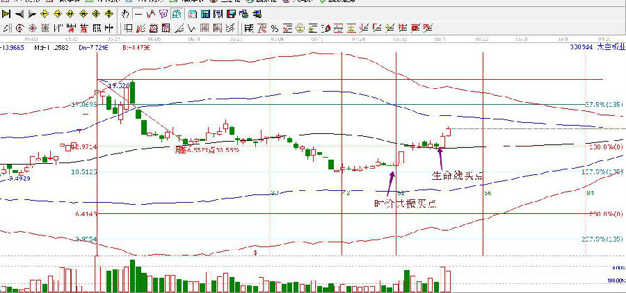 1.極反通道原理:物極必反。生命線將個股分為強勢和弱勢兩個區域,生命線上為強勢,可操作區域;生命線下為弱勢,觀望區域。