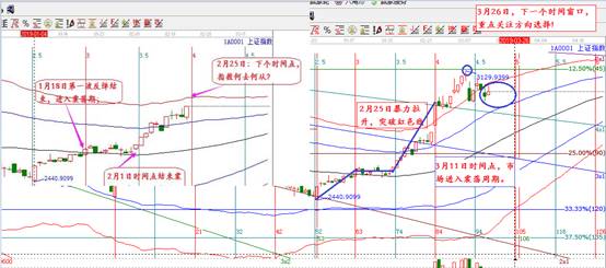先來說下大盤的走勢,最近一次談大盤是在2月23日,當時的上證指數處于明確的上漲周期中,筆者提示的是2月25日是下一個時間窗口。現在回過頭來看,市場在時間窗口暴力拉升,直接突破了江恩極反通道紅色線,進入到了超強勢震蕩區域,指數在攻擊江恩45度3130點后遇阻回落,并在3月11日時間窗口確定市場進入震蕩及調整時間周期,下一個關鍵時間點3月26日。目前,指數處于紅色線附近,短期預計市場會在藍色線及紅色線區間內震蕩運行。個股交易,規避高位,尋找低位滯漲股為主。具體的大盤走勢及操作機會可關注江恩看盤及贏家江恩公眾號。