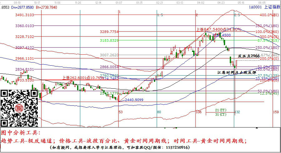 五一節后指數大幅低開,看空者急劇增加,5月8號(2860點)、9號(2840點)頂著壓力,嚴格遵守工具規則與信號判斷為短線機會,規避了風險、抓住機會,歸功于贏家江恩交易體系、交易規則與方法。江恩時間周期推算下個時間窗口是17號,空間點位上江恩輪中輪、波段百分比延伸線2840位置不破,向上反壓力分別是2966、3051點,這是短線觀點,中長線觀點請持續跟蹤贏家江恩市場解讀。(微信公眾號:yingjiajiangen)