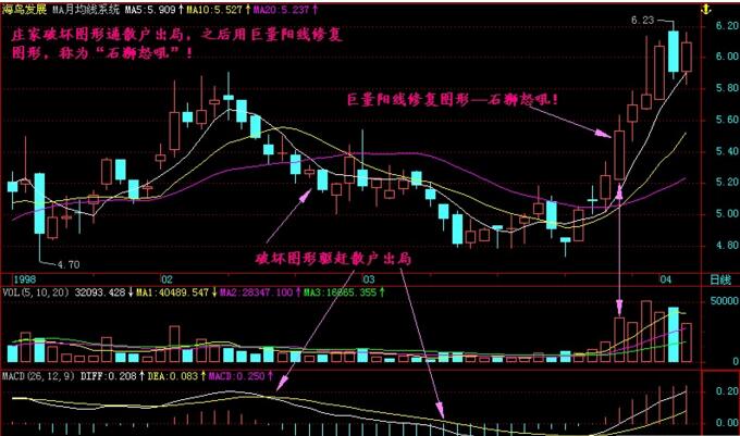 “石獅怒吼”是短線操作中的一種K線走勢形態,多出現在股價上漲形態被破壞之后的修補形態分析,而其操作的要點就是采用巨量陽線進行圖形修補,其具體的操作要點和案例分析如下: