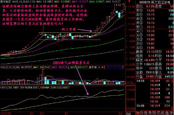 特別提醒如果是某種基本面變化原因導致的停牌,一旦復牌后出現巨量跳空K線的,一般都是主力的原因,有的時候是主力乘混亂建倉,而有的時候是主力借機出貨。這樣我們可以通過OBV能量潮來輔助判斷一下,再把跳空后的股價高低收盤價框起來,形成一個懸空K線群,觀察股價是向哪個方向突破,也就知道主力在干什么了,只要主力突破的方向是向上,我們就基本可以跟進了!