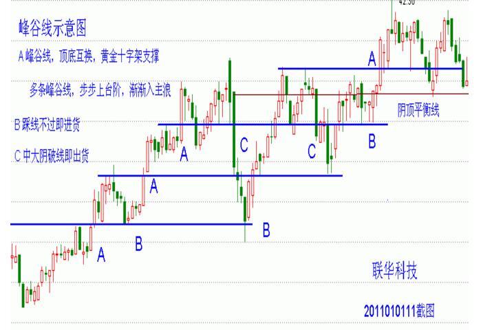 由左側(cè)峰頂和右側(cè)谷底精準(zhǔn)點連線而成,無縫重合,在實戰(zhàn)中比較少見,但是攻擊力比較強(qiáng),上漲的行情比較兇猛,不斷的創(chuàng)出新高,具有單峰頂、群峰頂、單谷底和群谷底之分,而且走勢好的股票會有多條峰谷線。