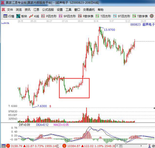二、在k線形態上,k線的實體較小,通常有多根連續性的小陰小陽線,且其間常現十字星走勢;