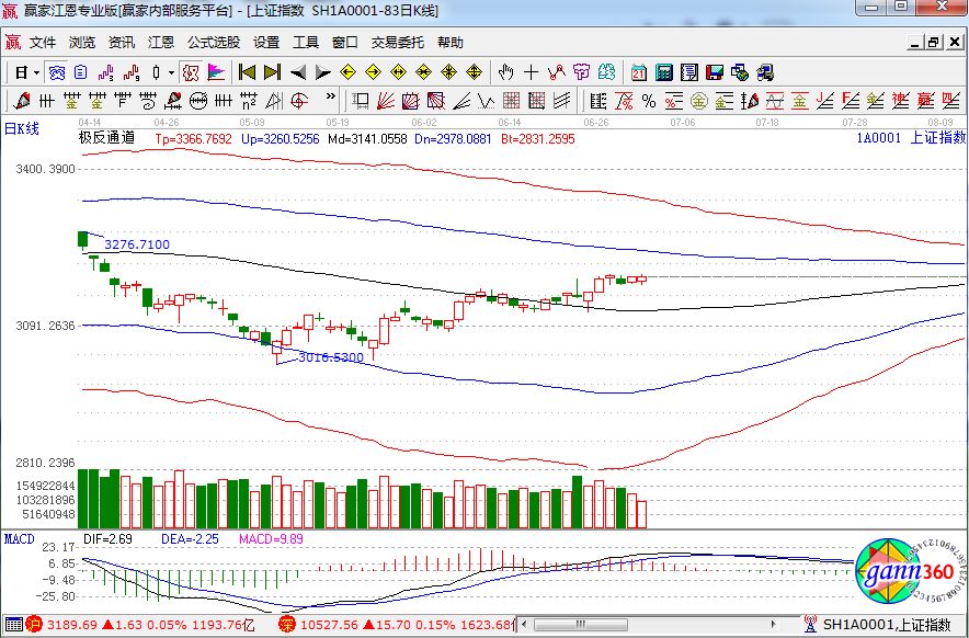 贏家江恩證券分析系統:這是一款專業的數據分析軟件,講江恩思想結合道家思想所型號曾俄中國式的江恩軟件,主要的哦給你舉包含有價格工具 時間工具 趨勢工具,量能工具和特色指標,精準的分析才能預測未來精準的空間。極反通道指標就是該軟件的特色(如下圖)