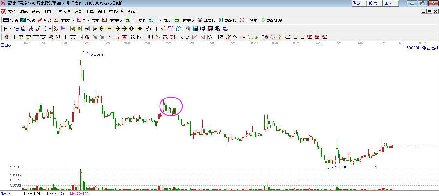 同一階段的個股總有走的逆勢與整體行情的個股。大盤代表80%的個股走勢,大部分的個股會跟蹤大盤的走勢,大盤漲,也會上漲,大盤跌,也會跟著下調。所以當某一天整體行情開始調整,而某些個股出現逆勢放量拉升,萬綠叢中一點紅,這會是相當吸引人眼球的,會讓人認為是潛在的重大利好消息,或是有心的機構接盤介入,大膽跟進,但這樣的行情很可能就是一日游,后期會出現加速補跌,虧損會更多。所以在放量拉升的時候,不要輕易去追。