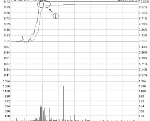 這樣做的實戰(zhàn)含義就是:在以后的兇狠拉升前做最后一次洗盤,此時的主力是能夠洗出多少短線跟風盤就洗多少,因為拉上漲停板以后,一般會有短線投資者選擇進行出局的,所以這是進的“開閘放水”洗盤,則起到較好的清洗短線浮動籌碼的作用!下面是上面的浪潮軟件中所圈部分當天的分時走勢圖。