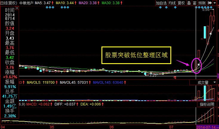 中糧地產(chǎn)在2014年7月14日的分時(shí)圖中,無盤之后,市場(chǎng)就傳出了這只股有重組的預(yù)期,隨后,該股就出現(xiàn)了旱地拔蔥的直線封板走勢(shì),而且在封上漲停板之后,個(gè)股直接封牢,在沒有進(jìn)行開盤。