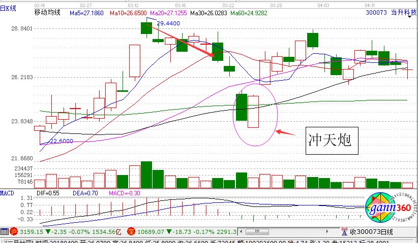 條件3、沖天炮呈現后,第二天就可以買入了,止損點可以設在沖天炮當天的最低價,破掉的話就有可能是失敗的;