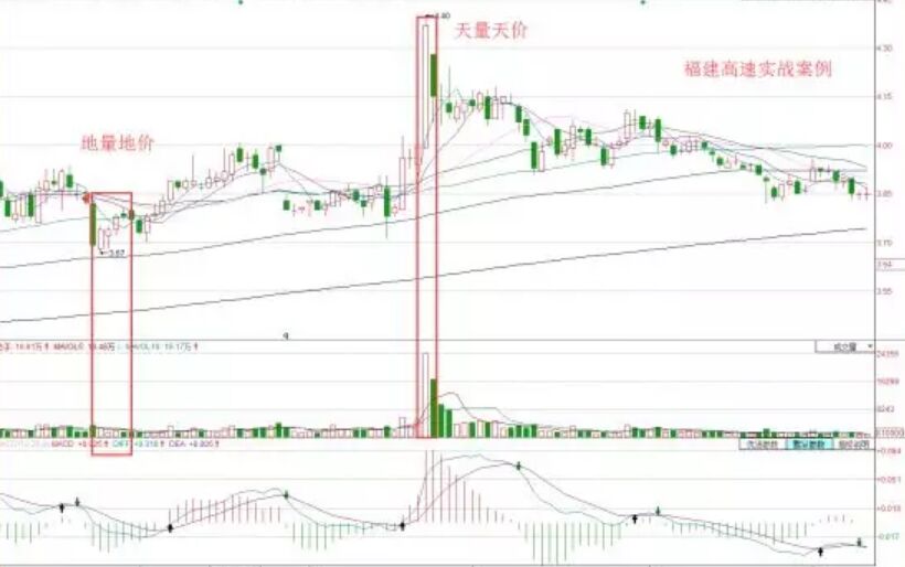 這里重點說明一下:天量天價多數是受到熱點事件驅動,一旦熱點消退,就會導致近期獲利資金急速離場,因此,不要著急進場,而要看它的熱點持續性、看它所處的位置、量價關系、基本面等等因素進行綜合分析。顯然,福建高速在放出天量天價后,隨后走出了持續下跌的行情。