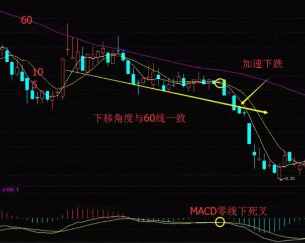 通過上面的走勢圖形,我們可以總結一下石牛海下沉要點的總結:K線處于下跌趨勢過程中,K線貼近60線,在該線之下運行,角度與該線一致,macd零線下死叉,K線出現大陰線,急跌即將開啟。