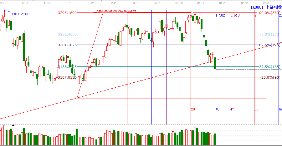 周一,滬深兩市開盤后快速下跌,跌破了2638點以來的上行通道,總體下行趨勢依舊,但經過連續殺跌之后,目前下跌動能逐步衰竭,下方百分比90度線強支撐在3107點附近,另外25日是短線的時間窗口,所以預計短期修復后將有超跌反彈行情。操作上,倉位控制在5成以下,逢低試探性加倉。繼續關注國企改革、環保以及一帶一路概念等。