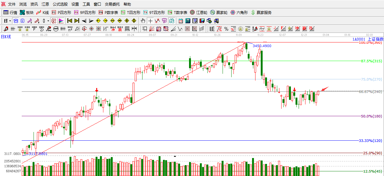 江恩看盤綜述:依據(jù)贏家江恩技術(shù)工具分析得出:周五,指數(shù)震蕩走高,尾盤收復(fù)3305點(diǎn)關(guān)鍵位置,是一個好的信號,但美中不足的是量能同比萎縮,接下來繼續(xù)關(guān)注3305點(diǎn)突破的有效性。如新年第一個交易日,如能繼續(xù)保持在3305點(diǎn)之上,指數(shù)有望繼續(xù)看高日線生命線3342點(diǎn)附近。不然繼續(xù)保持謹(jǐn)慎,操作上,繼續(xù)控制倉位的前提下,重點(diǎn)關(guān)注成長性良好有業(yè)績支撐的小盤股。
