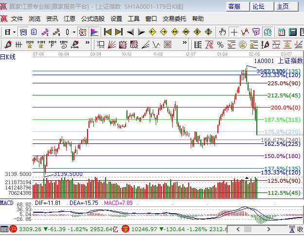 周三大盤高開低走長陰殺跌大跌1.82%,從開盤算下跌有百點,創業板探低回升上漲近1%。板塊方面,地產、銀行、家電、釀酒、石油、保險、航運等藍籌大跌;鄉村振興、次新和科技類成長股引領題材股行情,跌停停仍有近40家。技術方面,滬指中陰失守極反通道日線生命線,周線生命線是3270附近,短周期15、30、60分鐘均進入極弱通道,7號下午的短期時間今日早盤仍有效,關注江恩百分比225度與240度所構成的支撐帶是否能短期止跌;創業板預計將圍繞弱勢外軌線震蕩,構造平臺蓄勢;上證50調整看日線生命線與上升級趨勢線位置。短線投機者支撐帶如能止跌可超短輕倉參與,穩健波段者休息。長線倉位4成持股不動,3290、3273為日內支撐,3335、3340為日內壓力。僅供參考,不構成任何投資建議。