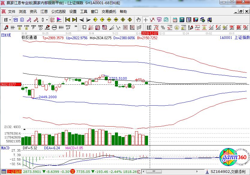 滬指跌1.68%,報(bào)收2605點(diǎn);深成指跌2.44%,報(bào)收7735點(diǎn);創(chuàng)業(yè)板跌2.61%,報(bào)收1345點(diǎn)。盤面上看,高送轉(zhuǎn)、機(jī)場(chǎng)航運(yùn)、知識(shí)產(chǎn)權(quán)保護(hù)、5G、生物醫(yī)藥等板塊跌幅居前。滬股通凈流出24億,深股通凈流出15億。相應(yīng)的極反通道指標(biāo)的支撐壓力提示,如下圖所示: