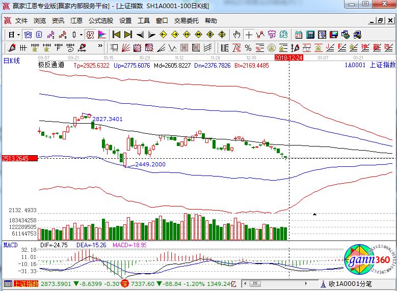 滬指跌0.79%,報收2516點;深成指跌1.20%,報收7337點;創業板跌0.61%,報收1270點。盤面上看,手機游戲、高送轉、互聯網彩票、次新股等板塊漲幅居前;創投、裝配式建筑、上海自貿區、租售同權等板塊跌幅居前。滬股通凈流入7.4億,深股通凈流出6億。相應的極反通道指標的支撐壓力提示,如下圖所示: