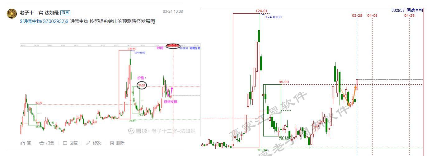 30號明德生物時間窗,預測方向選擇向下,價格看回落下方臨近支撐位。再次驗證時間和價格工具的有效性!贏家不推薦不指導,23年市場投教,系統教你時價信號究竟如何把握!全方面做系統學習和培訓計劃,打造理性投資之道!