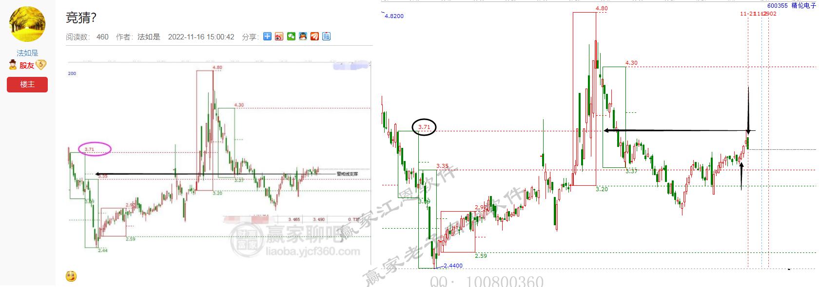 精倫電子之十二宮,最近關注的一只十二宮短線信號。11月16日預測江恩量化工具(十二宮)價格警戒線為支撐,空間目標在上方3.71元。時間在21號。且看最終驗證結果,價格走出3.71元,時間21號來臨后,上漲趨勢完結。再現江恩何時何價的技術預測。