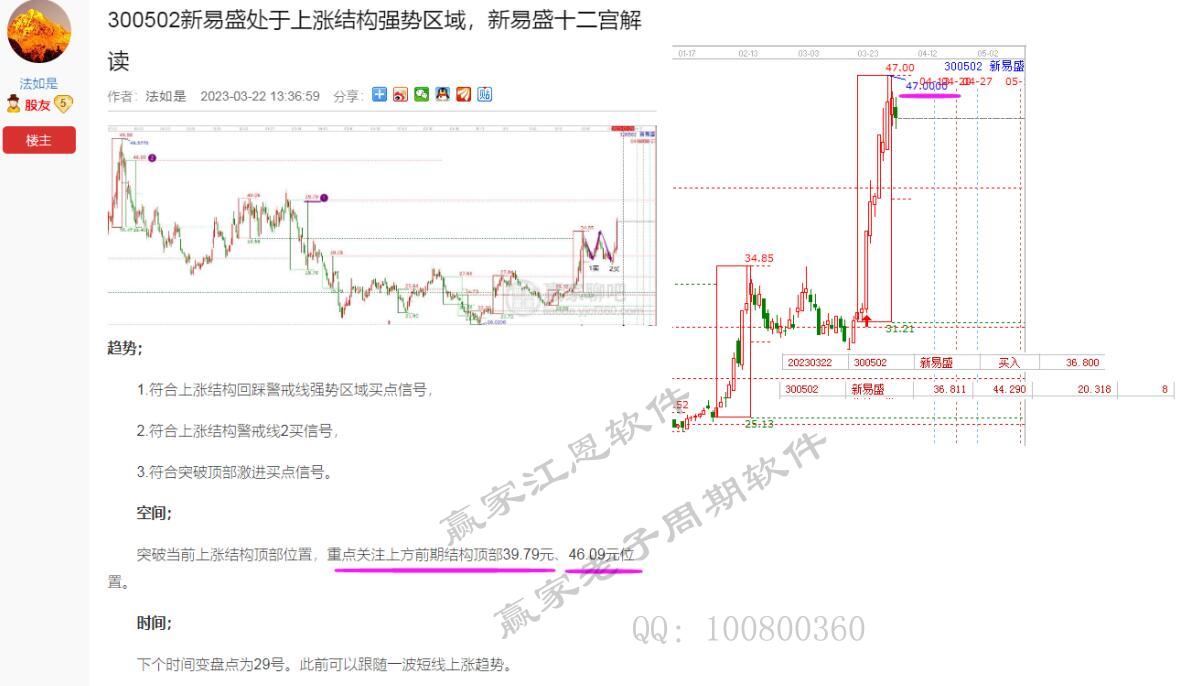 按照工具規則,突破當前上漲結構頂部位置,重點關注上方前期結構頂部39.79元、46 09元位置。