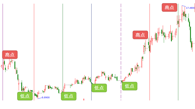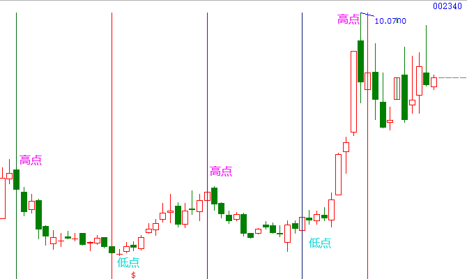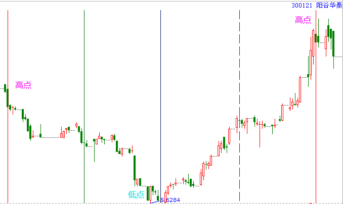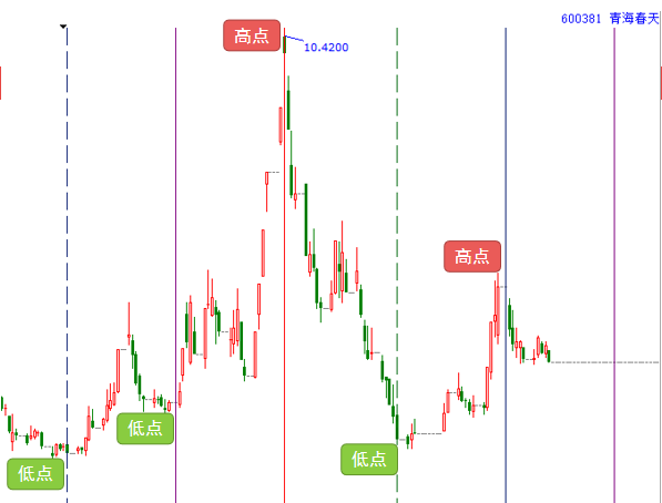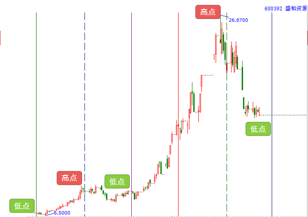 實(shí)戰(zhàn)應(yīng)用:下圖是盛和資源600392老子時(shí)間周期數(shù)列圖,綠線時(shí)間窗口后股價(jià)創(chuàng)出6.5元低點(diǎn)即刻上攻,上漲至藍(lán)虛線時(shí)間窗形成高點(diǎn),紫線修整結(jié)束,股價(jià)重回升勢(shì)漲幅達(dá)2.3倍,遇綠虛線形成高點(diǎn),每次時(shí)間窗口均是股價(jià)低高點(diǎn)。