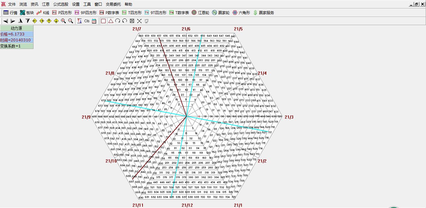 江恩六角形的構造是江恩市場分析技巧中比較繁雜的,他是一張六角形螺旋狀數字表。 數字六...
