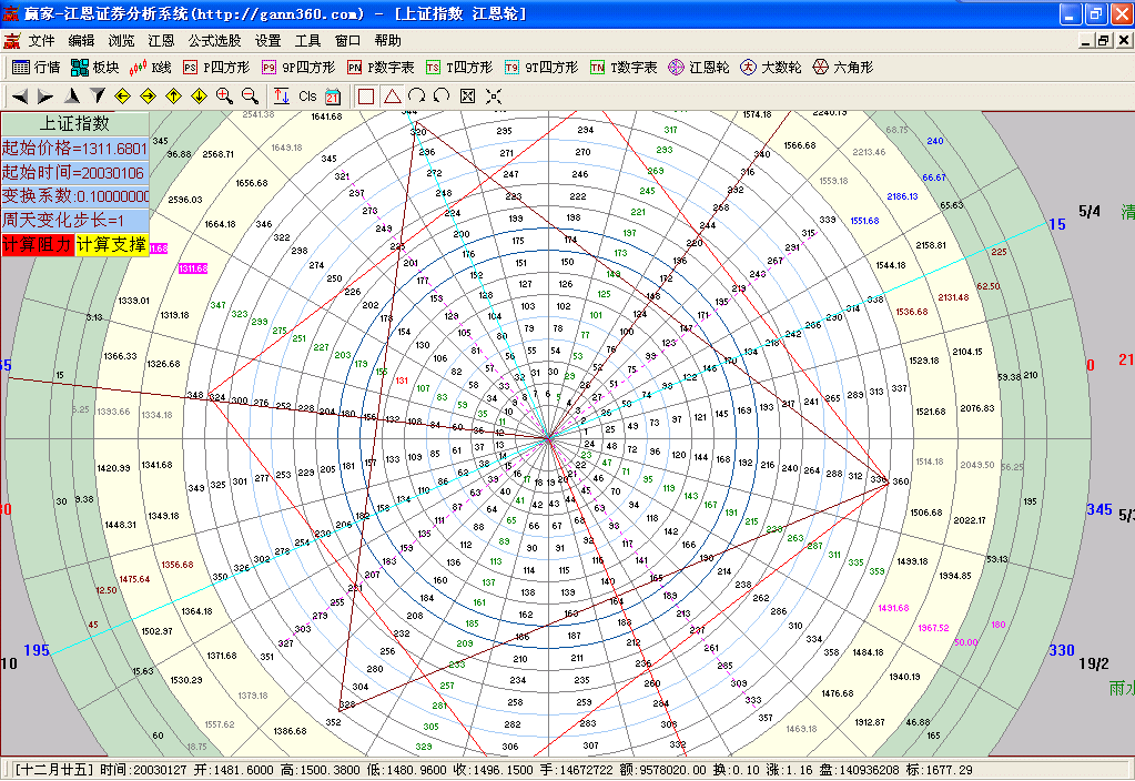本軟件除實現了江恩的經典判市工具:包括江恩輪、價格正方形、九格價格正方形、時間正方形、九格時間正方形、六角形、角度線、江恩計算器、時間及價格循環線、時間周期線、江恩價格回調帶外,增加了百分比線、百分比延伸線、黃金延伸線、黃金回調帶、黃金分割阻力支撐線、k線價格四方形、自定義時間價格計算器、黃金時間周期線、螺旋時間周期線、自定義周天江恩時間循環線、平方時間循環線、三點周期線、螺旋歷法時間循環線、k線時間論中論(變盤點)、k線時間四方形(變盤點)、時間轉折日提示、24節氣轉折日提示、神奇周期線、神奇價格線、贏家周期線、自定義時間周期線、趨勢轉折線、點位跟蹤轉折線。