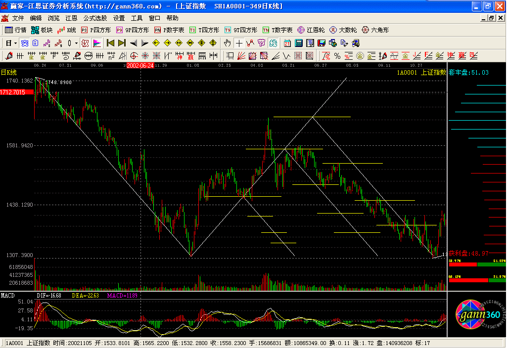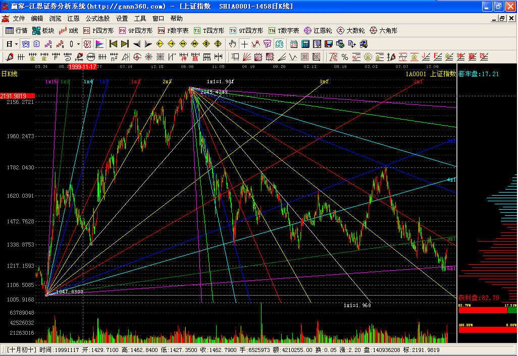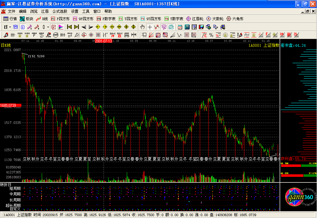 贏家江恩證券分析系統,1999年研發問世,迄今22年,專注技術分析,專注江恩理論研究,專注散戶一整套股市盈利體系的構建。該系統基于一整套的江恩理論設計研發,適用于股票、期貨、外匯等市場,其分析方法獨特、分析指標獨創,一切遵從自然法則。軟件除實現了江恩經典測市工具,如江恩輪、正方形、六角形、角度線、江恩計算器、時間及價格循環線等之外,還依據贏家團隊多年的研究開發了許多極具實戰價值的工具和指標,如極反通道、24節氣、轉折日提示等。