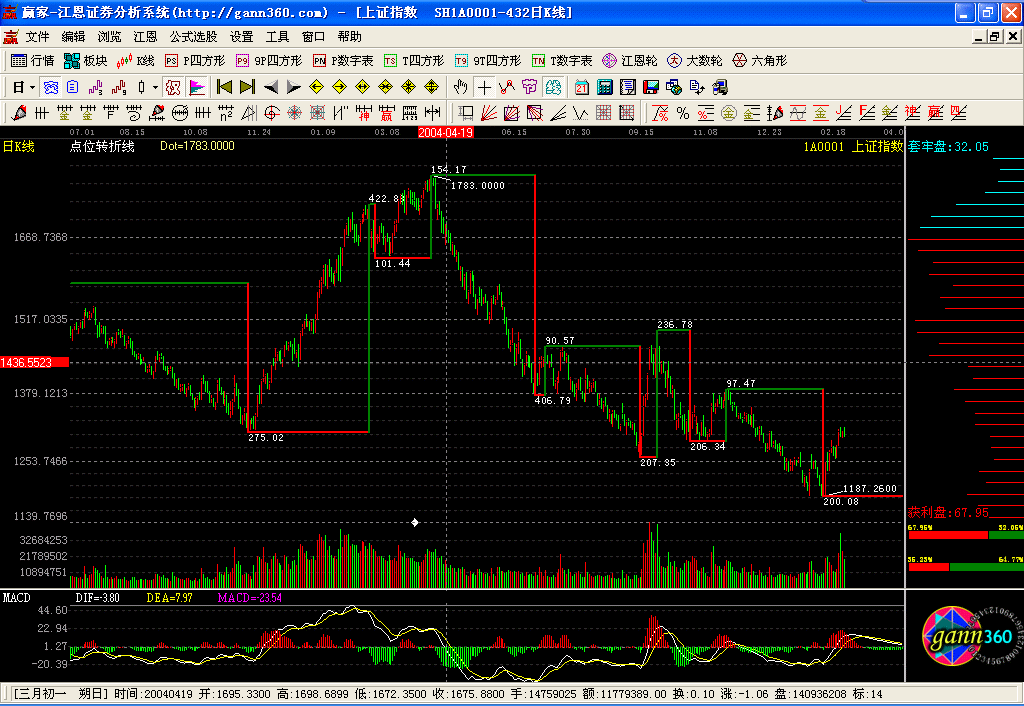 江恩理論是眾所周知的著名證券分析理論之一,是一套完整的操作和預測相結合的理論體系,它的分析方法獨特,分析工具特別,分析和預測效果卻匪夷所思。江恩理論,對一個初學者來說也許感到艱辛,因為這個理論不容易被人理解和掌握,常常使你面對理論和k線無從著手應用,贏家江恩軟件多年來一直致力于江恩理論的研究和應用,并將研究成果制作成分析軟件--《贏家江恩證券分析系統》,誕生于1999年,迄今24年了,深受各大券商從業人員,私募基金經理所喜愛。這是一套完全的江恩理論的軟件,很好的解決了江恩理論的應用問題,軟件中除具備江恩當年使用的分析工具以外,作者根據多年的研究和理解,獨創了很多的分析工具,這些工具是在理解江恩所說的自然法則的基礎上延伸出來的,有些是江恩理論的復雜應用,可以說這些工具是江恩理論的傻瓜式應用,只要您了解了他們的應用方法,即使你不能完全理解江恩理論也可以應用江恩理論,因為每一個分析工具都遵從自然法則。這就是贏家江恩軟件的重大突破。