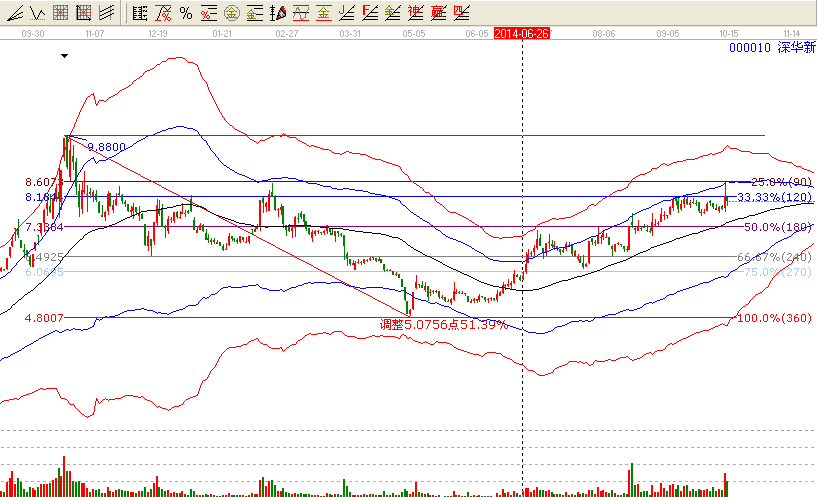 從圖中可以看出如果該股近期突破25%的位置,將繼續看高一線,如果不能突破我們就需要注意生命線位置的支撐點(7.50附近)了,破了就懂的止損出來。