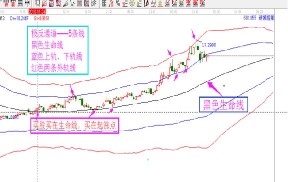 2.買賣點位的精確計算。極反通道5條線是互為阻力支撐線。看好的股票要想買賣的更好,實戰中將日線周期和日內5-15-40-60綜合判斷可以得到共振的點位,經常是可以狙擊日內最高點和最低點。