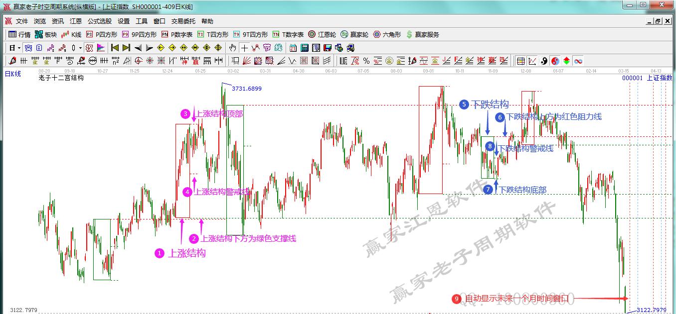 上漲結(jié)構(gòu)的完成,往往是短線或波段上漲能量的衰竭點。贏家十二宮所呈現(xiàn)出的頂?shù)撞烤嬖谕昝赖纳衿姹壤P(guān)系,神奇更需要運用專業(yè)的角度去看待,審時度勢。首先,確認一波上漲結(jié)構(gòu)先要看趨勢的回調(diào)力度,且觀察目前是否處于下跌的支撐位,其次,判斷不同的大小周期可通過相應(yīng)的大小結(jié)構(gòu)趨勢做屬性分析,最后,再結(jié)合贏家時間周期確認時間轉(zhuǎn)折點,以便確認方向的選擇。
