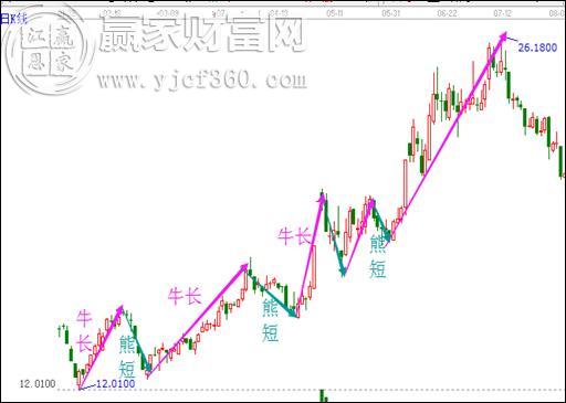 牛——上漲階段,熊——下跌階段,“牛長熊短”即上漲階段要長于下跌階段。不管是大盤還是個股,觀察其走勢,若上漲的時間長,而下跌的時間短,則代表多頭強勢,該股后市仍繼續看好。反之,若下跌的時間大于上漲的時間,則該股弱勢不予考慮。